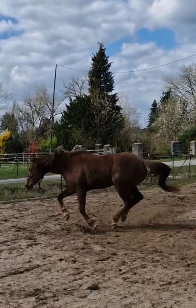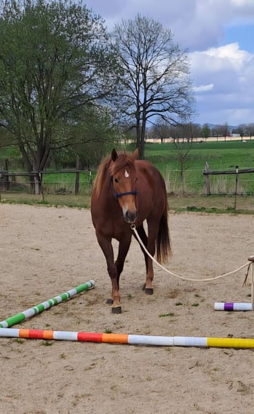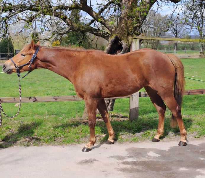 Diese tolle Quarter Pony Stute aus 2023, eingetragen beim ZSSE sucht ein neues, förderndes zu Hause. Stockmaß ~150cm. Ihr Vater ist Playing with badger, der 2025 auf der German Open unter den top 25 im Ranch riding landete. Ihre Mutter (Quarter x Haflinger) ist erfolgreich in der Distanz bis 60km, stets mit bestem Vet-Check. Diese junge, gesunde Stute bringt alles mit, was man sich von einem Ranch-Horse oder Reiningpartner wünscht. Sie verfügt über eine hervorragende Auffassungsgabe, ist nervenstark und zeigt will to please. Sie ist vom Boden gearbeitet. Bei der Freiarbeit zeigt sich ihr Talent: sehr Wendig, schnelle Reaktion, gute Kooperation. Das Satteln kennt sie bereits und zeigte hier keine Auffälligkeiten. Ein Kind saß bereits am Anbinder drauf, auch das verlief unspektakulär. Typisch Ranchhorse mag sie Routinen und hat gerne klare Aufgaben. Neuen Dingen begegnet sie wach, aber sehr kontrolliert und immer gut händelbar. Den Hof verlässt sie auch ohne Pferdegesellschaft ohne Probleme. Sie ist selbstverständlich regelmäßig dem Schmied vorgestellt und läuft barhuf, wobei zu betonen ist, dass sie über eine hervorragende Hufqualität verfügt. Außerdem ist sie geimpft, entwurmt und die Zähne wurden halbjährlich kontrolliert. Generell ist sie im Umgang mit Kindern brav, aber aufgrund des Alters nicht als Kinderpony geeignet. Zusammenfassend: Sie ist das Pferd, das in Zukunft und nach weiterer Ausbildung alles mitmachen wird. Ich wünsche mir für sie jemanden der ihr Talent fördert. Sie kennt Box und Offenstall, zeigt sich in der Herde ranghoch. Menschen begegnet sie freundlich und kooperativ, versucht es immer richtig zu machen. Eine AKU kann auf Wunsch veranlasst werden. Aufgrund persönlicher Veränderungen zum fairen Preis verhandelbar, wenn der Platz passt. Es handelt sich um einen Privatverkauf. Weitere Infos gerne auch telefonisch, nach kurzem Schriftverkehr.