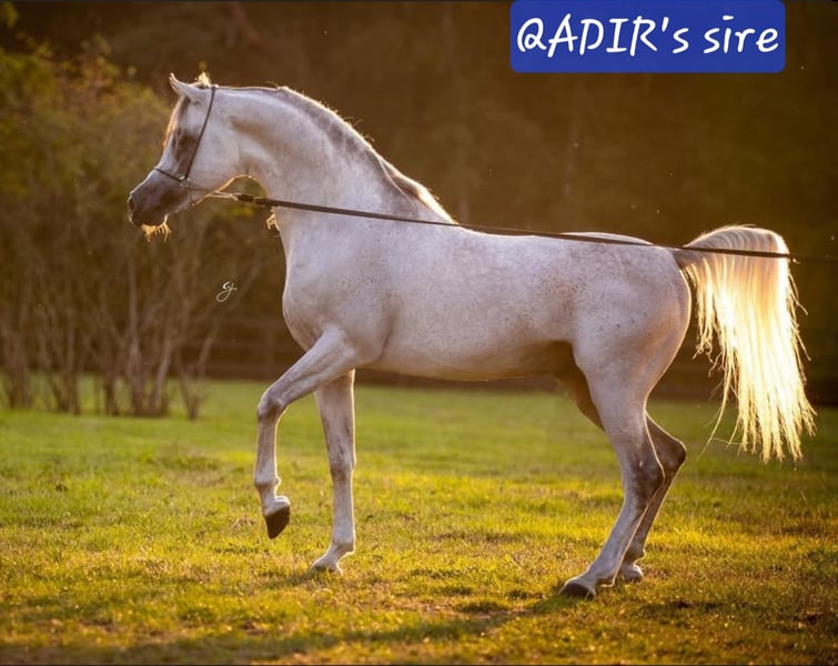 Straight Egyptian Arabian Thoroughbred, From TOP bloodlines, gray, for breeding purposes. Approved and registered with AVS NL. Qadir is a handsome young stallion with strong, correct conformation. Measures 150 cm, will be 6 years old in August. Very stable and calm temperament, easy to handle and train, and able to distinguish between training and covering situations. Hacking out in mixed groups poses no problem. His first foal is expected in September this year. The mare was pregnant on her first attempt. Professional photos and videos will follow in spring. Also available is Qaz, a homozygous black Straight Egyptian stallion, imported from the USA. 155 cm. See other listing. Available for natural coverings. Fresh semen at an AI station is also possible. Travel arrangements with the stallion(s) can be discussed (NL, DE, BE, Austria, Switzerland, Slovenia, Croatia). Costs for fresh semen or travel to the mare/stallion (with or without foal) are additional and are the responsibility of the mare owner, on top of the breeding fee. Transport for the mare to QY and back home can also be arranged for a reasonable fee. Foal guarantee: If a stallion foal is born, you will receive the next covering at half price. Live foal guarantee. **Apart from the coverings covered by the guarantee, no repeats of matings will be offered. This ensures your foal has an exclusive pedigree.** Serious and neat inquiries will receive a serious and professional response. Please preferably contact via WhatsApp +31 6 10271771. Anonymous or random questions will not be answered here. Your first name and phone number are appreciated.