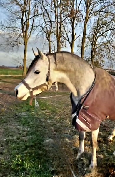 Straight Egyptian Arabischer Vollblüter, aus TOP-Blutlinien, Schimmel, zur Deckung. AVS NL genehmigt und registriert. Qadir ist ein schöner junger Hengst mit kräftigem und korrektem Fundament. Er ist 1,50 m groß und wird im August erst 6 Jahre alt. Sehr ausgeglichenes und ruhiges Wesen, leicht im Umgang und in der Ausbildung, erkennt den Unterschied zwischen Training und Deckung. Ausritte in gemischten Gruppen stellen kein Problem dar. Sein erstes Fohlen wird im September geboren. Die Stute war beim ersten Versuch tragend. Professionellere Fotos und Videos folgen im Frühjahr. Ebenfalls verfügbar ist Qaz, homozygoter schwarzer Straight Egyptian Hengst, importiert aus den USA. 1,55 m. Siehe anderes Inserat. Der Hengst steht für natürliche Deckungen zur Verfügung. Auch frisches Sperma auf K.I.-Station möglich. Auf Wunsch kann mit dem Hengst (Hengsten) gereist werden (NL, DE, BE, Österreich, Schweiz, Slowenien, Kroatien). Die Kosten für frisches Sperma bei K.I. oder für Anreise zum Deckhengst (mit/ohne Fohlen) gehen zusätzlich zu den Deckgeldkosten zu Lasten der Stutenbesitzerin. Der Transport der Stute zu QY und zurück nach Hause kann gegen eine angemessene Gebühr ebenfalls organisiert werden. Stutenfohlen-Garantie: Bei Geburt eines Hengstfohlens erhalten Sie die nächste Deckung zum halben Preis. Lebendfohlen-Garantie. **Außer den Deckungen, die unter die Garantie fallen, werden keine Kombinationen wiederholt. So bleibt Ihr Fohlen eine exklusive Blutlinie.** Seriöse, ordentliche Anfragen erhalten eine ebenso seriöse und ordentliche Antwort. Bitte vorzugsweise per WhatsApp +31610271771. Anonyme oder zufällige Anfragen hier werden nicht beantwortet. Ihr Vorname und Ihre Telefonnummer sind erwünscht.