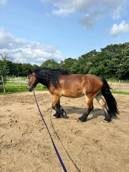 Met pijn in ons hart scheiden we van onze koudbloedige ruin. Ook wij zijn niet onberoerd gebleven door inflatie en geopolitieke spanningen. Helaas moet er nu een zeer moeilijke beslissing worden genomen en moeten we afscheid nemen van een goede, langjarige vriend. We hebben hem nu ongeveer 9 jaar. Hoogte: 1,75 m Gewicht: 780 kg Leeftijd: 12 jaar Joris is absoluut ongecompliceerd bij de smid en bij het laden. Hij heeft een basisopleiding in de Engelse dressuur en in de westernsport en wordt veel aan de grond en in het terrein gereden. Hij is een absoluut lief paard, dat af en toe zijn eigenzinnigheid laat zien. In de kudde staat hij eerder onderaan en vermijdt hij liever stress. Hij heeft veel plezier in zijn werk en houdt ervan om uitgedaagd te worden. Hij is een betrouwbaar paard zoals in de boeken staat. Hij heeft eigenlijk heel goede hoeven en was altijd onbeslagen. Echter, hij heeft onlangs een hoefabces gehad, dat diep uitgesneden moest worden en is nu vooraan beslagen, verder is hij vrij robuust, verkoudheden zijn hem onbekend. Vanwege een bevinding (botcyste, 11.04.22) is hij berijdbaar, maar heeft soms wat zwakkere dagen waarop hij iets mankt. Men moet een beetje rekening houden met zijn bevinding en krijgt dan een hardwerkende, slimme en goede vriend in huis. De bevinding is natuurlijk in te zien. We kunnen ons goed voorstellen dat hij als terreinpaard voor gezellige ritten wordt gebruikt, evenals als parttime rijpaard in de bak. Hij wordt verkocht met zadel, hoofdstel en westernpad. Locatie is Duisburg Baerl. Plaatsing gebeurt alleen in de beste handen! Voor vragen sta ik natuurlijk graag tot uw beschikking, ook al valt het me niet gemakkelijk.