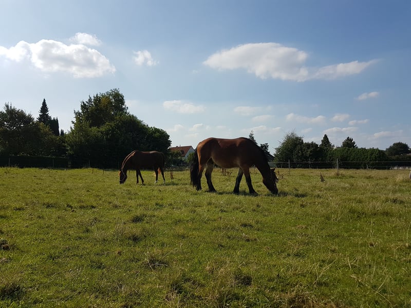 With a heavy heart, we are parting with our cold-blooded gelding. Inflation and geopolitical tensions have also affected us, and now we must make the difficult decision to say goodbye to a good long-time friend. We have had him for about 9 years. Height: 1.75 m Weight: 780 kg Age: 13 years Joris is absolutely uncomplicated with the farrier and during loading. He has a basic training in English dressage and Western riding and is often worked on the ground and in the terrain. He is a very sweet horse, who occasionally shows his stubborn side. In the herd, he is more towards the bottom and prefers to avoid stress. He enjoys working and likes to be challenged. He is a reliable horse, as described in the books. He actually has very good hooves and has always been barefoot. However, he recently had a hoof abscess that needed to be cut out quite high, and is now shod in front; otherwise, he is quite robust and does not suffer from colds. Due to a diagnosis (bone cyst, 11.04.22), he is rideable but has some weaker days when he limps a bit. One must pay a little attention to his condition, and in return, you will have a diligent, clever, and good friend. The diagnosis is, of course, available for viewing. We can well imagine him as a trail horse for leisurely rides as well as a part-time arena pilot. He is sold with saddle, bridle, and Western pad. Location is Duisburg Baerl. Placement is only to the best hands! For any questions, I am of course happy to help, even though it is not easy for me.