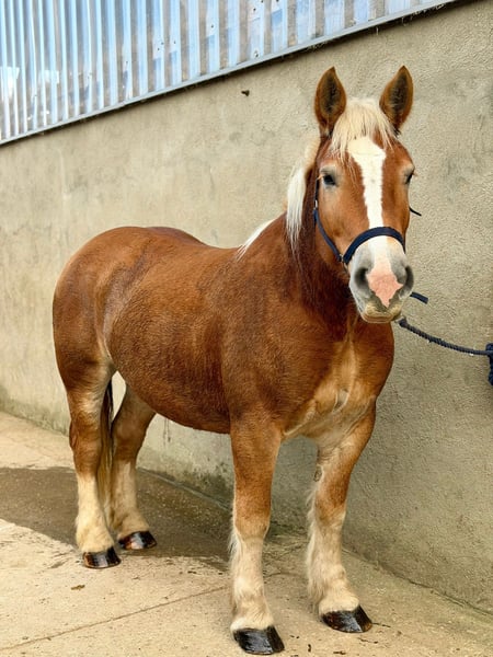 Aufgrund persönlicher Umstände suche ich schweren Herzens ein neues, liebevolles Zuhause für meine Rheinische Deutsche Kaltblutstute Heidi. Heidi wurde im Juni 2019 geboren und wird in diesem Sommer 7 Jahre alt. Sie misst knapp 1,60m. Sie läuft sowohl barhuf als auch beschlagen problemlos. Aktuell steht Heidi in einer Offenstallgruppe und ist E-Zaun-sicher. In der Herde zeigt sie sich eher rangniedrig und geht Konflikten lieber aus dem Weg. Heidi ist im Gelände angeritten und zeigt sich auch auf dem Reitplatz sehr motiviert und lernwillig. Zudem wurde sie bereits eingespannt und hat beispielsweise die Reithalle abgezogen. Auch dabei war sie stets arbeitsfreudig, zuverlässig und motiviert. Sie ist sehr händelbar, geländesicher und menschenbezogen. Aufgrund ihres ruhigen Wesens kann ich mir sehr gut vorstellen, dass sie ein verlässliches Kutschpferd wird. In den letzten Jahren war Heidi außerdem regelmäßig bei Kindergeburtstagen im Einsatz. Dabei zeigte sie sich immer tiefenentspannt, geduldig und genoss die Aufmerksamkeit der Kinder. Auch eine Tätigkeit als Therapiepferd könnte ich mir für sie sehr gut vorstellen. Heidi liegt mir sehr am Herzen. Daher wünsche ich mir für sie nicht nur ein neues Zuhause, in dem sie gut versorgt wird, sondern einen Platz, an dem sie geliebt und als Teil der Familie angesehen wird.