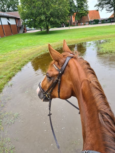 Farley, born on May 16, 2015, is an exceptionally lovable gelding who has been in consistent, caring hands since 2019 – taken directly from the breeder and has since been developed with calmness and patience. He has been gently trained, is placed A-level at competitions, and is currently being worked at L-level in dressage. Farley impresses with three very pleasant basic gaits – especially his comfortable canter and rhythmical walk make riding a true pleasure. In the extended trot, one feels as if they are gliding across the arena. In handling, he is always friendly and absolutely reliable. Farley is a real cuddle bug – whether human or horse, he always seeks closeness and enjoys every bit of attention. While grooming, saddling, or simply in the stable: he is always balanced and friendly. He also shows confidence in the field – preferably in small groups, where he walks attentively and relaxed. He enjoys pole work and also shows enthusiasm in lunging and free jumping. Farley is easy to handle, good with the farrier and loading, as well as well-behaved at the vet – an uncomplicated partner with charm and heart, who will bring much joy to his person. An ideal horse for riders who value a loving relationship, clear communication, and fine riding.