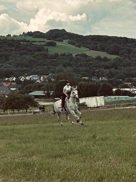 Herzenspferd sucht seinen Seelenmenschen. Manchmal bedeutet Liebe auch, jemanden gehen zu lassen - damit er die Chance bekommt, genau das Leben zu führen, das er verdient. Schweren Herzens abzugeben weil ich ihm reiterlich einfach nicht gewachsen bin. Belantino liebevoll Schimmel genannt, ist ein achtjähriger, 1,78 großer Wallach, der nicht nur durch seine wunderschöne Optik besticht, sondern auch durch seinen absolut charmanten und einnehmenden Charakter. So ein Pferd erlebt man wirklich nicht alle Tage, wir sind viel am Lachen mit ihm. Er ist ein richtiger Clown und Charmeur, „Hitzkopf" beschreibt ihn auch sehr gut! Er hat PSSM P2/P2. Sein Vater ist der berühmte prämierte Belantis I und seine Mutter eine Black Pearl. Er läuft barhuf, hatte aber auch schon vorne Eisen aufgrund der Schotter Wege bei uns, er ist schmiede- und verladefromm. In der Vergangenheit trat man Belantino leider bereits in jungen Jahren und viel zu früh, mit viel Druck gegenüber, wodurch er eine Abwehrhaltung und Misstrauen gegenüber dem reiten entwickelte. Er wurde bei mir dann anders gearbeitet und braucht einen Menschen, der fair, aber auch sehr kompetent, sicher und konsequent ist. Er ist beim Reiten noch nicht immer einfach und reagiert teilweise sehr sensibel auf Druck. Belantino macht aber kontinuierliche Fortschritte. Mit dem richtigen Menschen an seiner Seite, der Spaß an einer Herausforderung hat und ihm fair, sicher und souverän gegenübertritt, wird er sich noch sehr, sehr gut entwickeln. Große Freude hat er an Spaziergängen und geht in der Gruppe und allein geritten mit einem sicheren Reiter ins Gelände. Er kennt Hunde, Landwirtschaftliche Geräte usw. Schimmeli kennt sowohl Offenstall-, als auch Boxenhaltung und steht aktuell in einer sehr großen Box aufgrund seiner Größe und benötigt die Möglichkeit sich viel und frei bewegen zu können. Sollte nach Wetter eingedeckt werden. Er ist rangniedrig und steht bei uns in einer gemischten Gruppe. Verträgt sich mit jedem, ein großes Hasenherz eben. Da er noch weiter ausgebildet werden muss, um wirklich ein zuverlässiges Reitpferd zu sein und zum aktuellen Zeitpunkt noch nicht zuverlässig ist, wird er wirklich sehr weit unter Wert abgeben. Leider hat er auch eine Art Hahnentritt. Probereiten ist aus Schutz zum Pferd und durch seine Sensibilität nicht möglich. 5.000 VB und Platz vor Preis! Keine Händler, Schulbetriebe. Bitte sende uns ein paar Infos zu Dir - was suchst Du, wie wäre die Haltung etc., wir freuen uns auf Deine Nachricht.