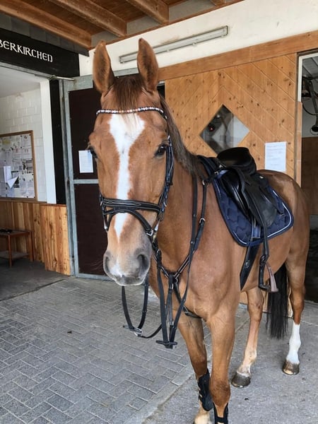 Favo is a charming and performance-oriented 12-year-old Rheinlander gelding. He is trained up to L level in show jumping and has already successfully competed in A** tests. Heights are no problem for him. In dressage, he also shows reliability on the bit with some consistent work and can perform at E to A level. He is not a beginner's horse, as he needs a rider who can provide him with security, assert themselves, and lead him consistently – both in jumping and in daily work. With a clear line, he is very willing to perform and works well. Favo enjoys company and feels more comfortable in a herd or with companions. When alone, he tends to be a bit "looky," but remains manageable and safe at all times. • Loadable and uncomplicated in transport • Shoeing-friendly, shod on all four hooves • Sale due to private reasons