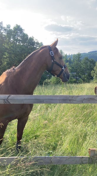 Favo ist ein charmanter und leistungsbereiter 12-jähriger Rheinländer Wallach. Im Springen ist er bis L ausgebildet und ging bereits erfolgreich A**-Prüfungen. Höhen sind für ihn dabei kein Problem. Auch in der Dressur zeigt er sich mit etwas konsequenter Arbeit zuverlässig am Zügel und kann E- bis A-Niveau gehen. Er ist kein Anfängerpferd, da er einen Reiter braucht, der ihm Sicherheit gibt, sich durchsetzen kann und ihn konsequent führt – sowohl im Springen als auch in der täglichen Arbeit. Mit klarer Linie ist er sehr leistungswillig und arbeitet gut mit. Favo mag Gesellschaft und fühlt sich in der Herde oder mit Artgenossen wohler. Allein neigt er dazu, etwas „guckig“ zu sein, bleibt dabei aber stets gut händelbar und ungefährlich. • Verladefromm und unkompliziert im Transport • Schmiedefromm, beschlagen auf allen vier Hufen • Verkauf aus privaten Gründen