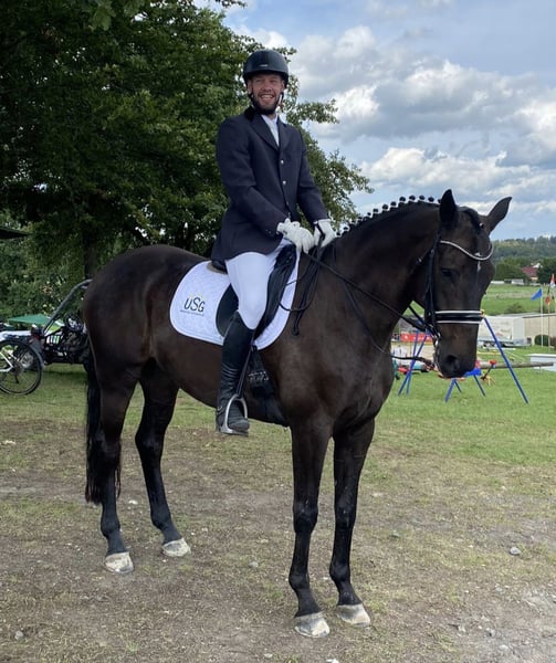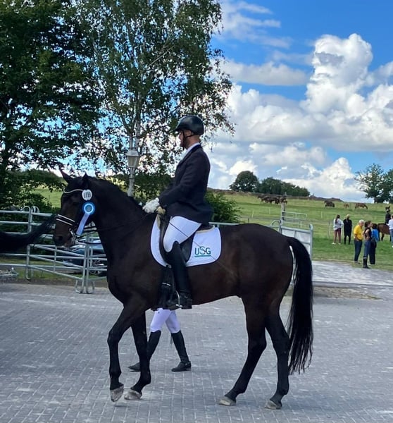 A well-trained dark bay gelding, born in 2014, is available for sale. He is suitable for dressage and has a solid basic education. He demonstrates a willing work attitude and is confident in all movements up to Grand Prix level. Magico, as he is affectionately called by us, is suitable for both advanced riders and ambitious young riders. In addition to dressage, he also enjoys lunging, hacking, pole work, and small jumps. Currently, he is being ridden 1-2 times a week by a riding partner at E-level. He has also proven to be a reliable partner in tests for rider certificates. Furthermore, he has daily turnout, is not fence-sure, and is herd-friendly. He is currently placed in M-level dressage and has already been presented in S-level dressage competitions. Magico has accompanied us for several years and is being sold only due to family expansion and a job change, which leave us with less time. If interested and for further information, please feel free to contact me. A trial ride can be arranged by appointment. We look forward to hearing from you.