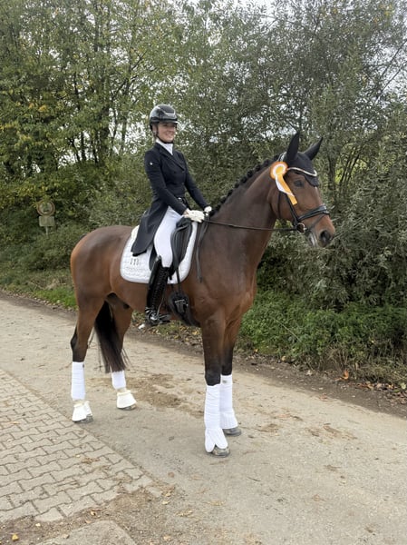 For sale is a highly successful 12-year-old Rhinelander gelding with excellent rideability and a temperament that is truly one of a kind. He is a winner up to S** level and has achieved 15 victories at Prix St. Georges level, including eight wins in the 2025 season alone, consistently scoring around 70%. He has been trained by the same rider since the age of five and has been carefully brought up through the Young Horse and Small Tour levels. He impresses with lightness, honesty, and reliability – always focused, sensitive to aids, and working with great enjoyment. Calm and obedient in training, relaxed at competitions, and dependable in the field. He loads easily, is well-behaved at the blacksmith, and handles all situations with ease. Ideal as a junior, young rider, or amateur horse. Also suitable for beginners or re-entrants, as he is very obedient, gentle, and balanced. Suitable as a family horse as well – a true schoolmaster that brings daily joy and helps his rider to develop further. Over two years ago, a health issue was discovered by chance, which has never affected him. He is fully active in sport – this condition is reflected in the price. Due to this, he is offered at a significantly reduced price – only to the best of hands. Inquiries please contact by phone or WhatsApp at +49 176 41674734.