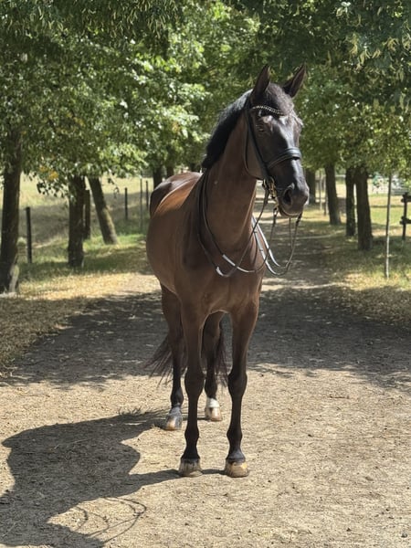 We are offering our very elegant and Grand Prix-winning chestnut mare, Viva, for sale. She was born and raised with us and has been trained up to Grand Prix level. Viva is a horse with exceptional quality and presence, combined with a calm, positive energy. She is very well-behaved and suitable for amateur riders. Her Grand Prix program is straightforward to execute. She has won S* dressage competitions with scores well above 70%, is placed prominently in international S** dressage classes, and has achieved victory in S*** dressage at Grand Prix level. As a young horse, Viva was x-rayed during a “Breeder’s TÜV” inspection—showing no notable issues. There are no current radiographs available. She has not been ill at any point throughout her years.