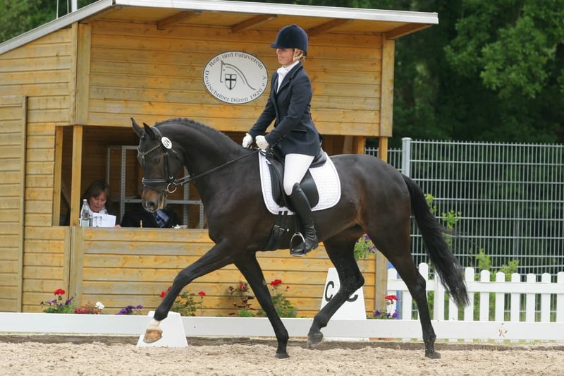Ze względu na zaprzestanie naszej hodowli, sprzedajemy naszą „Ritę“, oficjalnie zwaną Rockstarlet. Miała u nas 5 obiecujących, dobrze jeżdżonych i ruchliwych źrebiąt od Labbadio i Diamantenglanz. 2-3 lata temu miała kolkę z nieznanej przyczyny. Od tego czasu na początku sezonu pastwiskowego wchodzi na pastwisko z kagańcem, stopniowo przyzwyczaja się do trawy, tak aby w połowie/końcu lata mogła całkowicie bez kagańca przebywać na pastwisku.