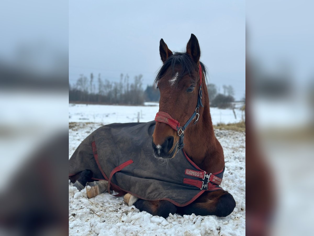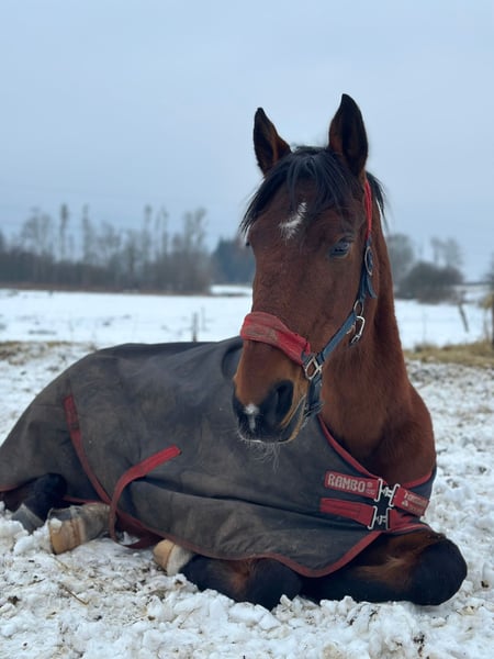Wir haben diese Stute vor einem Jahr aus einer Reitschule übernommen, die ihren Betrieb aufgegeben hat und sie liebevoll versorgt und sie altersgemäß nun bei uns im Unterricht eingesetzt. Nun möchten wir Sie in ein Zuhause geben, wo Sie als Privatpferd Ihre Rente in Teilzeit verbringen kann Anfangs ist sie etwas skeptisch, jedoch immer lieb. Auf dem Platz ein 100% verlasspferd, was nicht mehr springen möchte. Ausreiten geht sie hier brav in der Gruppe Sie hat vorne fast keine Schneidezähne mehr. Ansonsten ist sie dem Alter entsprechend fitt und steht derzeit im Offenstall mit 24/7 Heu. In der kalten Jahreszeit stand sie in der Box und tagsüber draußen. Sie bekommt etwas Kraftfutter und eingeweichtes täglich dazu. Im Sommer stand sie 24/7 auf der Weide. Lässt sich auch von kleinen Kindern in allen Gangarten brav reiten und Kontrollieren. Gerne ein neues Zuhause im Umkreis, da Ihre Reitbeteiligung, die mit ihr zu uns gekommen sich nach 13 gemeinsamen Jahren gerne weiter um sie kümmern würde. Natürlich geimpft, Zähne im Juni 25 gemacht und Regelmäßige Hufbearbeitung. Zubehör darf gerne übernommen werden