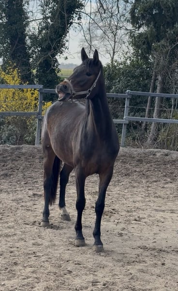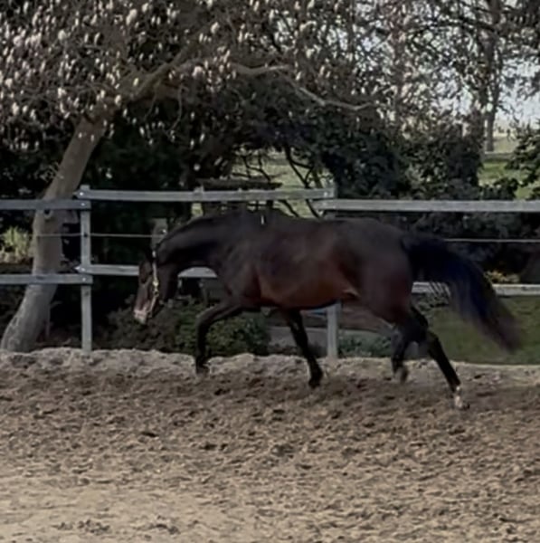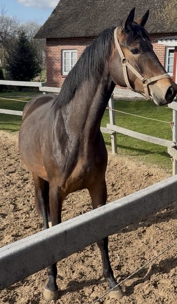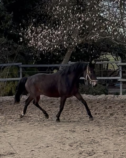Beautiful three-year-old mare by Rickhofs Erbe x Earl, available for sale to a caring home. The mare has recently been lightly backed and is handling everything very calmly. She is also always impeccable in her manners. She has been X-rayed, including her back (no abnormalities). She is currently approximately 16.1 hh. Three genuinely good basic gaits. A wonderful opportunity for someone to train her themselves. She is being sold directly by the breeder.