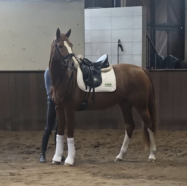 Verkaufe eine wunderschöne bunte Fuchsstute! Wir bieten eine wunderschöne und rittige Stute zum Verkauf an. Geboren im Jahr 2022, präsentiert sie sich ansprechend und überzeugt durch ihre Rittigkeit sowie ihre beeindruckende Erscheinung. Ihr ausgezeichneter Charakter macht sie zu einer vielversprechenden Partnerin für ambitionierte Reiterinnen und Reiter. Bei Interesse oder für weitere Informationen freuen wir uns auf Ihre Kontaktaufnahme. Ein Kennenlernen und Proberitte sind nach Vereinbarung möglich. Ein guter Züchtertüv liegt bereits vor. Videos auf Anfrage!