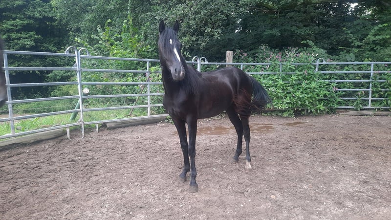 Zwartkleurige ruin – Rocky Mountain Horse x Paso Fino Mooie, grote zwartkleurige ruin met een harmonieuze lichaamsbouw en elegante uitstraling. Hij komt uit een zeldzame en spannende kruising: Rocky Mountain Horse, bekend om zijn kalmte, vriendelijke karakter en comfort in het zadel, en Paso Fino, gewaardeerd om zijn elegantie, leergierigheid en fijne reactiesnelheid. Hij is vriendelijk, nieuwsgierig en mensgericht. In beweging toont hij zich ontspannen en goed in balans – een solide basis voor zijn verdere opleiding. Ideaal voor ruiters die op zoek zijn naar een betrouwbaar, veelzijdig gang- en recreatiepaard.