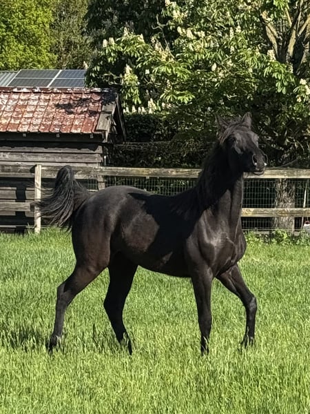 We hereby offer our lovely and beautiful yearling Vica DD. Vica is a daughter of our RMH mare Midsummer Night Lady and the stallion EFM Rockin Rocket. She has the beautiful color Smokey Black and has a very sweet and easygoing character, and she is also well-behaved with the farrier. If you are interested and can provide her with a nice home, please get in touch.