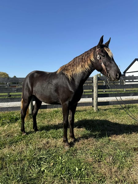 "AVAILABLE ON ONLINE HORSE AUCTION AT www DOT MagicHorseAuction DOT com BIDDING OPEN NOW thru TUESDAY | November 25TH! - BUY IT NOW AVAILABLE! *Final price will be determined on auction site* CONSIGNOR CONTACT INFO: Zach Brandenburg 513-508-3684 LOCATION: Moscow, OH Lilly is a absolutely gorgeous chocolate grade Rocky mtn mare that is 4 years old and stands 15 hands tall, this is a definite barn favorite who is not only beautiful but a fun ride! This mare is smooth and natural in her gait and has a very civilized demeanor, Lilly is calm cool and collected 100% of the time, aims to please and is truly enjoyable to have around. She rides out alone and in groups with no issues. She is easy to ride, traffic safe and confident on the trail. This is a horse that we all look forward to riding. She stands patiently and likes attention from her people. Although she is four she is a soul that rides and handles like an older horse but has her whole life ahead of her! We are very proud to be able to have a horse like her to present to the public!. Feel free to call or text 513-508-3684 or email brandenburg829@gmail.com thank you and God bless