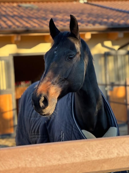 È un cavallo da salto adatto per brevetti che ambiscono al primo grado, è vincente nelle sue categorie (130). In passato il cavallo ha dato ottimi risultati nei concorsi internazionali 140. Bocca semplice e sempre montato in filetto, nelle categorie 115 e 120 risolve facilmente situazioni difficili. Il cavallo è nato in un prestigioso allevamento italiano, noi siamo i secondi proprietari. Cavallo di facile gestione, comodo in tutte le andature, leggero e rispettoso in sella. Lavora molto bene in piano e alla corda. È addestrato Parelli. È molto bravo a lavorare in compagnia con altri cavalli e rimane tranquillo anche da solo. Bravissimo in passeggiata e a paddock. Non ha vizi redibitori, non si hanno problemi con ferrature e tose. Il cavallo non ha problemi di salute e osteoarticolari (non si è mai fatto male) e sono disponibili le lastre. Il cavallo è in vendita per passaggio di categoria.