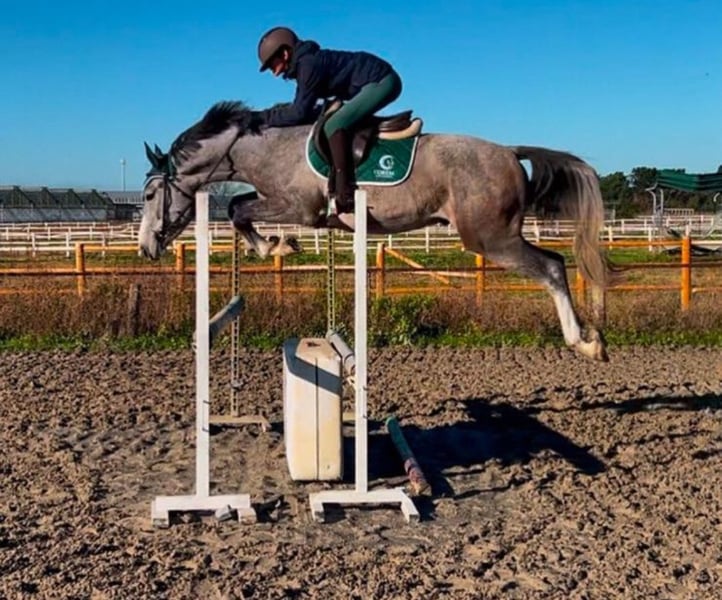 Italian saddle gelding, 2021 model, from Età beta. Nelson is a young horse with little competition experience but is very cooperative. He is not afraid of anything, demonstrating good qualities in jumping and flatwork. He is also excellent for starting in eventing. He is used to being ridden by riders with a license, but as a young horse, it would be advisable to have an experienced person on board or at least an experienced ground handler.