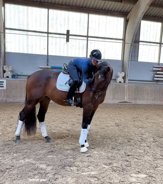 Atemberaubender 4-jähriger Wallach von L’Arc de Triomphe aus Tenerife VDL. Dieses vielversprechende junge Pferd ist seit nur drei Monaten im Sattel und beeindruckt bereits mit drei hochwertigen Gängen – besonders hervorzuheben ist sein herausragender Schritt! Er verbindet ein wunderbares Temperament mit einem freundlichen, willigen Charakter, was ihn sowohl am Boden als auch unter dem Reiter leicht zu handhaben macht. Mit 1,77 m ist er ein großer Pferd, das auch für Reiter kleinerer Statur eine bequeme Sitzposition bietet. Wie im Video zu sehen ist, ist der Reiter nur 1,65 m groß – ein Beweis für seine ausgezeichnete Rittigkeit und Handlichkeit. Mit seinem Sprungvermögen, Temperament und seiner Rittigkeit ist Le Roix Triomphant ein Pferd mit sehr viel Potenzial für die Zukunft. ✅ Röntgenaufnahmen auf Anfrage verfügbar. 💶 Eine Proberittgebühr von 50 € ist erforderlich, um Reittourismus zu vermeiden und nur ernsthafte Interessenten zu gewährleisten. 📍 Standort in Deutschland, an der Schweizer Grenze. 📩 Für weitere Informationen: info@daniadressage.com