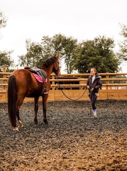Superbe bai cerise, élégant et déjà très expressif. Ce jeune cheval, pré-débourré, a été travaillé principalement en rond de longe afin de poser des bases solides et sereines. Il montre une belle volonté d’apprendre et un comportement appliqué dans le travail. Calme, équilibré et proche de l’homme, il constitue une excellente base pour un cavalier souhaitant poursuivre sa formation dans de bonnes conditions. Un cheval d’avenir, prêt à évoluer dans un cadre sérieux. Instagram de la photographe : aimecommemargaux