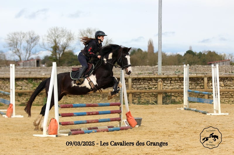 🔸 Lord du HA Hongre – 5 ans – 1m63 – OC Origines : Paint Horse x Selle Français par Concorde ✨ Cheval pie au modèle harmonieux, avec de très belles allures et un excellent équilibre naturel ✔️ Débourré, monté aux 3 allures ✔️ Enchaîne actuellement 80 cm monté ✔️ A déjà sauté 125 cm monté en puissance ✔️ A déjà sauté 130 cm en liberté (non exploité davantage) 🌟 Aptitudes Montre de réelles qualités pour évoluer aussi bien à l’obstacle qu’en dressage. 🧠 Profil Jeune cheval en cours de formation, idéal pour cavalier souhaitant évoluer avec un cheval de qualité. Convient à partir d’un niveau Galop 5 encadré. ℹ️ Informations complémentaires Hongre castré à 4 ans Vie actuellement 100 % extérieur, tolère très bien le box Pieds nus Tonte OK 📍 Visible à Saint Hippolyte dans le 17 📞 Pour plus d’informations, photos, vidéos ou venir l’essayer contactez moi en mp 💰 Prix : inférieur à 13 🥕🥕🥕 Négociable si départ rapide