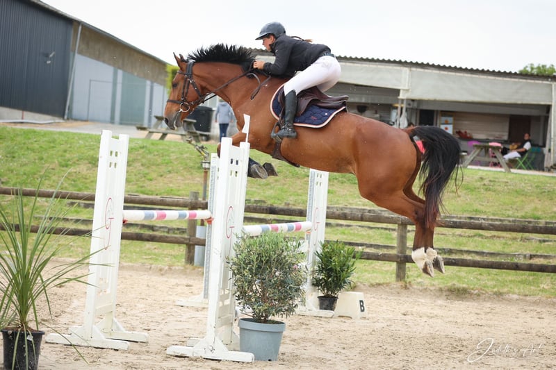 Hongre de 5 ans, Selle Français Bai Cerise Il toise 1m67 Par Be Express*HDC SF x Uxane du Ricou SF ( Quouglof Rouge ) Première année de concours en 2025 : - Cycle classique 5 ans - Formation 2 - Cycle libre 2 ème année Il est proche de l’Homme, gentil et facile au quotidien Il a de la force et un très bon passage de dos A jour osteo, dentiste, vaccins N’hésitez pas à nous contacter pour plus de renseignements