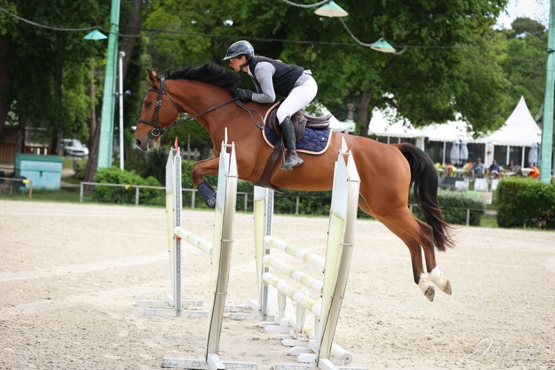 Fünfjähriger Wallach, Selle Français Fuchs mit weißen Abzeichen Er misst 1,67 m Vater: Be Express*HDC SF, Mutter: Uxane du Ricou SF (Quouglof Rouge) Erstes Jahr im Turniersport 2025: - Klassischer Zyklus für 5-Jährige - Ausbildung 2 - Freier Zyklus, 2. Jahr Er ist sehr menschenbezogen, freundlich und im Alltag unkompliziert. Er besitzt viel Kraft und einen sehr guten Rückenpass. Aktuell osteopathisch behandelt, beim Zahnarzt, alle Impfungen auf dem neuesten Stand. Zögern Sie nicht, uns für weitere Informationen zu kontaktieren.