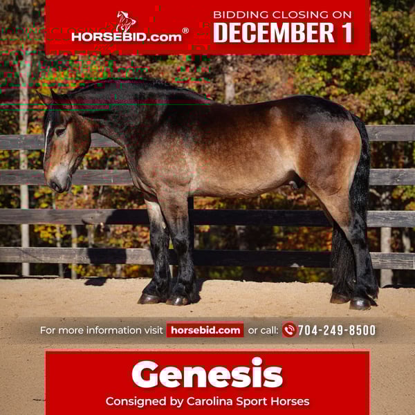 ⚜️ 𝓽𝓱𝓮 𝐇𝐨𝐫𝐬𝐞𝐦𝐚𝐧'𝐬 𝓢𝓱𝓸𝔀𝓬𝓪𝓼𝓮⚜️ Happening now thru MONDAY | DECEMBER 1st - Available EXCLUSIVELY on HorseBid's website! For more details and to register visit: www.Horsebid.com CONSIGNOR CONTACT: Carolina Sport Horses 704-249-8500 LOCATION: Clover SC BREED: Selle Francais x Trakehner x QH REGISTERED: No COLOR: Buckskin HEIGHT: 16.1-2 AGE: 6 GENDER: Gelding Genesis is one of the most breathtaking horses we’ve ever offered—an undeniable work of art with the presence, build, and elegance that stop people in their tracks. His beauty is matched only by his temperament: calm, reliable, and wonderfully safe for riders of all ages. He’s the rare horse that gives confidence to beginners yet still offers the talent and feel that experienced riders truly appreciate. Under saddle, Genesis is a joy. He loves to flat in the arena with soft, balanced gaits and a steady rhythm that riders instantly connect with. Outside the ring, he shines just as brightly—brave, thoughtful, and honest on cross-country, trails, and any new adventure you send him on. His size and strength make him a fantastic candidate for fox hunting, working equitation, hilltopping, family trail rides, and all-around fun. In the barn, Genesis is pure sweetness. He is loving, kind, and deeply connected to the people around him. He thrives when he has a person or family to bond with—someone he trusts, follows, and wants to please. He is the horse who quietly becomes “your” horse, greeting you at the stall, enjoying grooming, and always trying to be the best partner he can be. If you’ve been searching for the perfect blend of beauty, safety, personality, and versatility, Genesis checks every box. He’s the family horse everyone hopes to find—stunning, dependable, affectionate, and endlessly enjoyable in every setting.