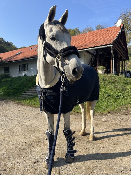 For sale is a 2012-born, grey Selle Français mare. Sire: Lux Z Dam: Estella Dam's sire: Jackomo Lestie boasts an excellent pedigree and very good jumping ability. She has successfully competed up to 125 cm with juniors and amateurs. Higher classes are definitely achievable – we have simply not advanced further due to my injury. This is also the reason for her sale. She is currently active in competition and ready to go at any time. She is an excellent choice for children, juniors, and amateurs. She has already been ridden by a beginner child and has taught him how to jump. Very easy to ride, no bad habits, she jumps everything from any position. Four-way shoeing. She loads easily, can be ridden alone or in a group in the terrain – both front and back. Regularly vaccinated and dewormed, in overall good health. She has previously had a foal, which now successfully jumps up to 135 cm. There is no rush to sell, and she will only go to the best hands. The mare is located near Kaposvár and can be tried by appointment. Additional photos and videos are available upon request. English speakers: https://wa.me/4915172419194