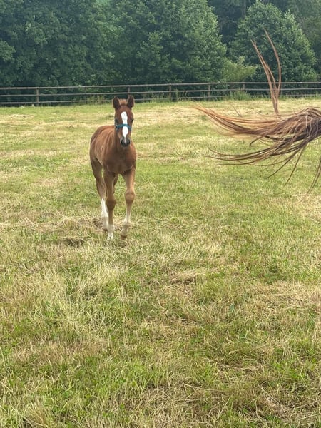 Fohlen der französischen Zuchtlinie von Untouchable 27 Brave Stute von Qlassic BM Old Chap brav Sehr sportliches Fohlen mit vielen Stärken.