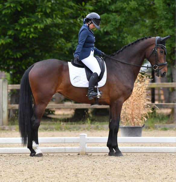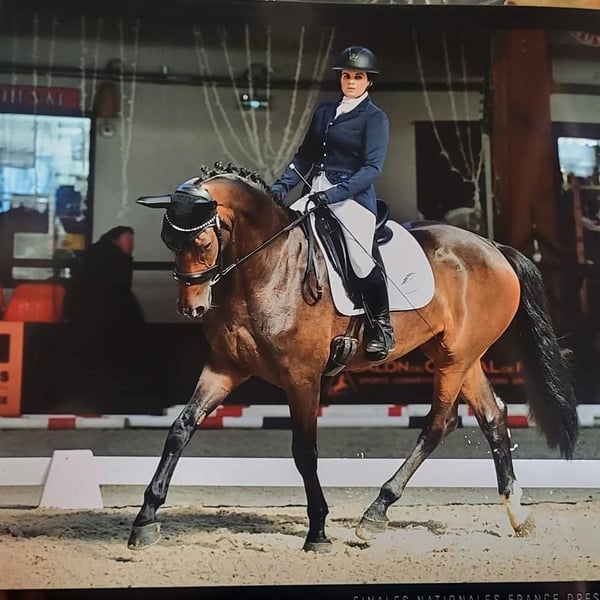 Bardzo ładna klacz SF z przyszłością, 4-letnia, po Galaxie du Feuillard x Jazz x Sandro Hit. Zaczynała swoją karierę u Sébastiena Jaulina (Hus). Uczestniczyła w finale dla 3-latków, gotowa do CL1. Klacz z klasą, lekka i zwiewna. Ekspresyjna. Bardzo dobre zrównoważenie, bardzo dobry galop. Wyniki radiologiczne w normie. Cena adekwatna do jakości klaczy. >20k