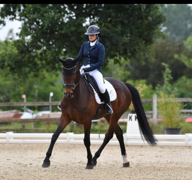 Sehr hübsche Zuchtstute mit viel Potenzial, 4 Jahre alt, sächsisches Pferd (SF), Tochter von Galaxie du Feuillard x Jazz x Sandro Hit. Hat ihre Grundlagen bei Sébastien Jaulin (Hus) gelernt. Hat die 3-Jährigen-Finale erreicht, bereit für CL1. Stute mit Eleganz und Leichtigkeit, sehr ausdrucksstark. Ausgezeichnetes Gleichgewicht, sehr guter Galopp. Röntgenbefunde ohne Befund. Preis entspricht der Qualität der Stute – über 20.000 €
