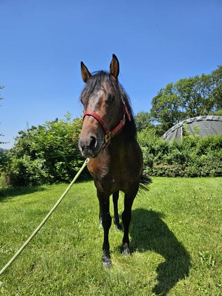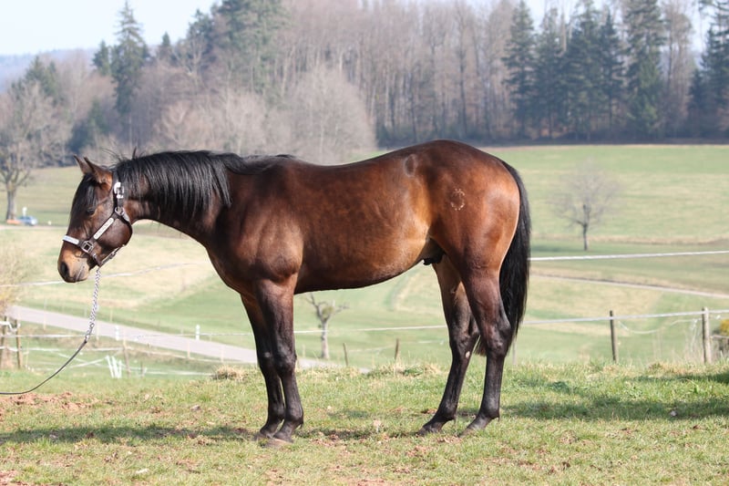 Étalon quarter horse très chic et bien élevé, issu de notre propre élevage. Caractère méga calme et brave au contact. De type copain. Toujours prêt à plaire. Tête claire et nette. Stkm. actuellement 150cm. A déjà des descendants qui sont formés comme chevaux de loisirs solides, mais aussi comme chevaux de compétition. Quelques poulains de 2023 sont chez nous à la ferme. S'accouple en monte naturelle. 5 panel N/N. Enregistré en Allemagne et aux Etats-Unis. Conditions de saillie sur demande !
