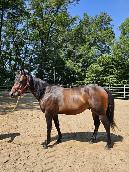 Sehr schicker und gut gezogener Quarter Horse Hengst aus eigenen Zucht. Mega ruhiger Charakter und brav im Umgang. Kumpeltyp. Will immer gefallen. Klarer Kopf. Stkm. derzeit 150cm. Hat bereits Nachkommen, welche als solide Freizeit-, ebenfalls als Turnierpferde ausgebildet werden. Einige Fohlen aus 2023, 2024, 2025 stehen bei uns auf dem Hof. Deckt im Natursprung. 5 Panel N/N. Registriert in Deutschland und USA. Deckbedingungen auf Anfrage.