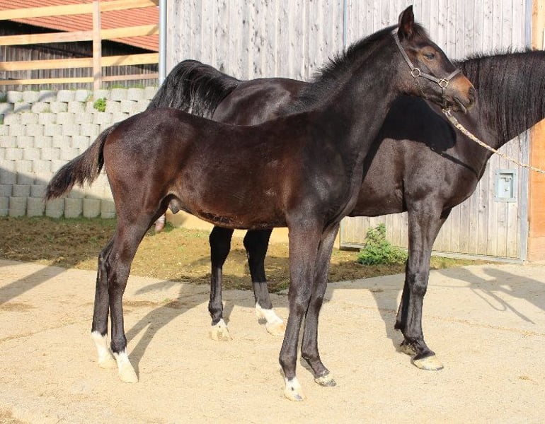 Babarello ShA is a very strong-moving, typey (bay) Shagya Arabian colt with three great basic gaits. He is very people-oriented. Babarello ShA was honored by the ZSAA at the foal inspection and awarded two stars! His dam "Babarella ShA" is an association premium mare with the ZSAA and passed her mare performance test with an overall score of 7.22. Babarello's sire is the licensed and stallion performance tested "Daru ShA". We would like to sell Babarello ShA primarily for breeding. He could stay with us for another year for further breeding. He is CA and SCID free (tested). www.shagya-araber-hofstetter.de