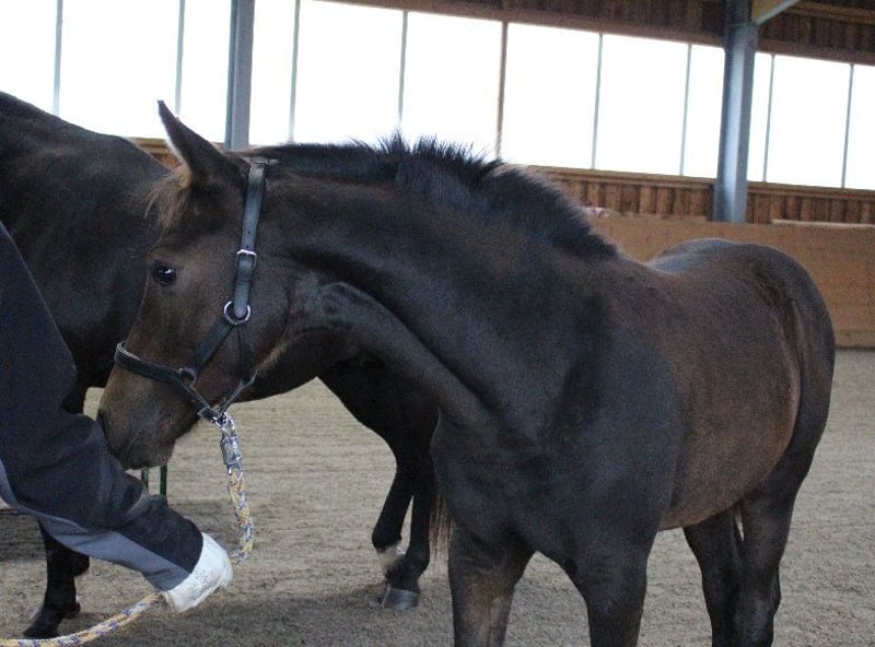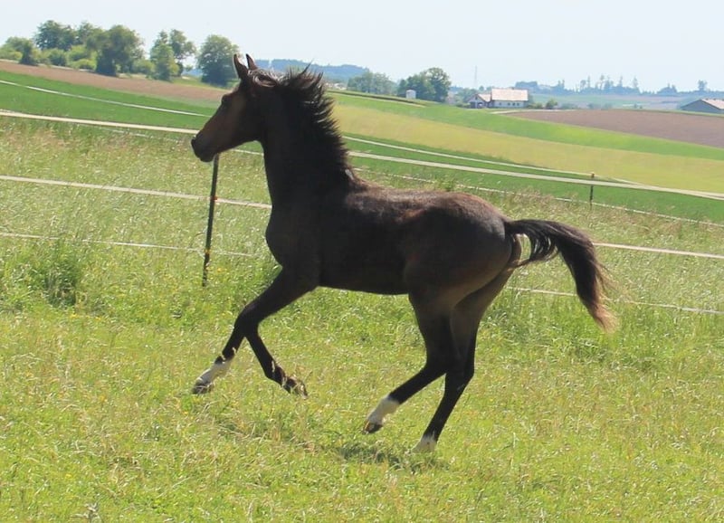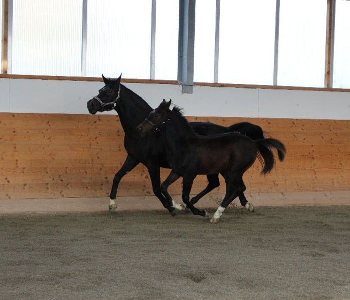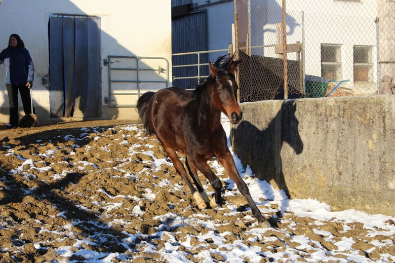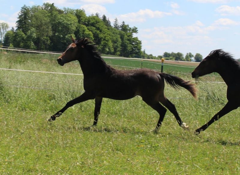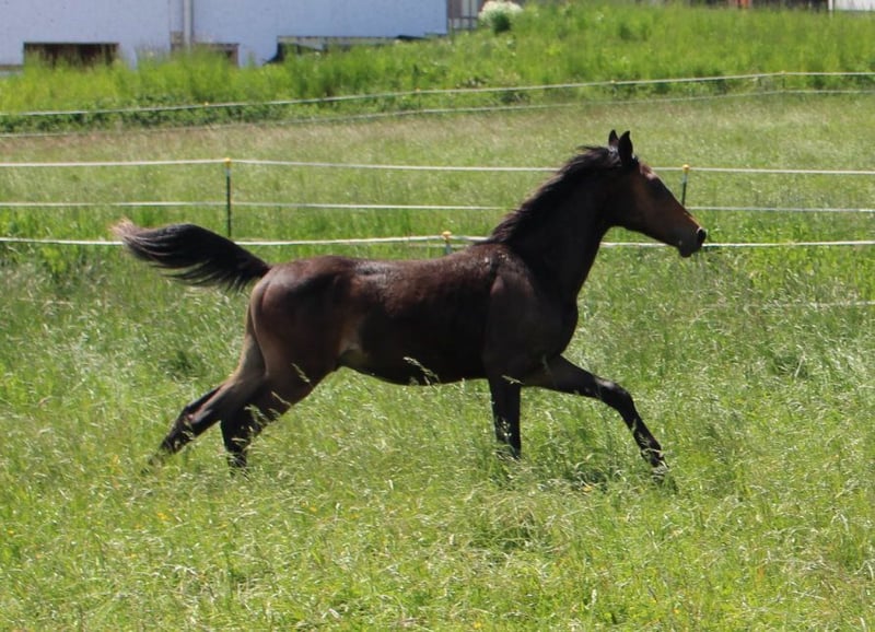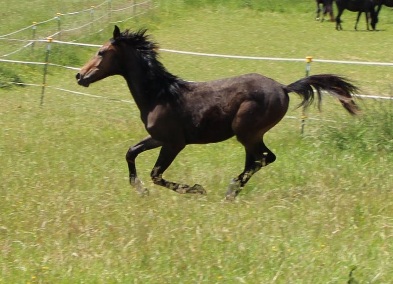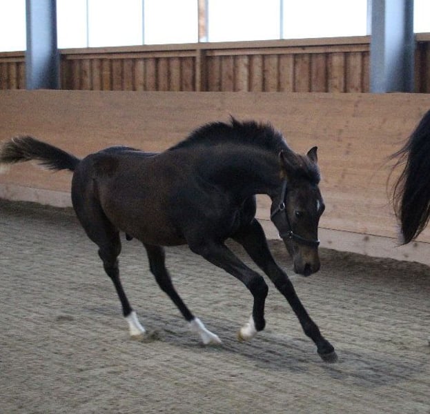 Brando ShA est un poulain arabe shagya très chic et bien typé. Il est absolument proche de l'homme et maîtrise parfaitement l'ABC du poulain. Malheureusement, Brando n'a pas pu se montrer de manière optimale lors de la sélection des poulains en raison d'une blessure et n'a obtenu qu'un "bon" ce jour-là. ( Les photos du trot datent du lendemain). Sa mère "Bonita ShA" est une jument prime de l'association ZSAA et a passé le test de performance des juments. Le père de Brando ShA est "Tolstoj al Samarra" ShA, approuvé et testé HLP (distance). Brando ShA est exempt de CA et de SCID (testé). Brando ShA pourrait rester chez nous encore 1 an pour l'élevage. www.shagya-araber-hofstetter.de
