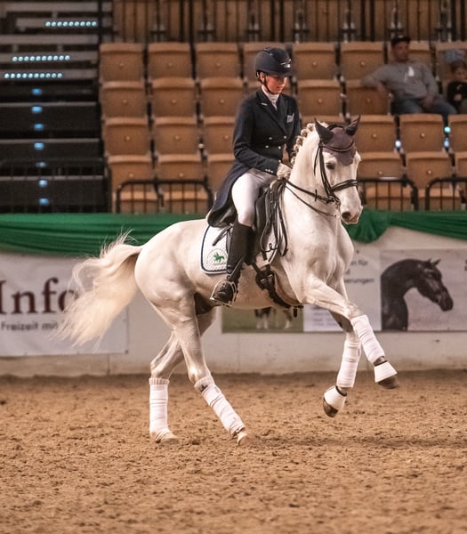 „Juni“ haben wir 2015 als Absetzer in Österreich erworben. Er ist in Springprüfungen der Klasse L und Dressurprüfungen der Klasse S platziert. 2021 legte er erfolgreich seine Hengstleistungsprüfung in Mertingen ab. Aufgrund dieser Leistung wurde er danach zur Körung des VZAP eingeladen und erhielt dort neben dem positiven Körurteil eine Prämie. „Juni“ überzeugt besonders mit seinem kraftvollen Springen, seinen elastischen Bewegungen und seinen tollen Rittigkeitswerten. Diese wurden auf der HLP mit der Tageshöchstnote von 8,5 belohnt.