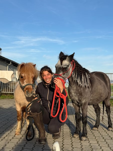 Zu vermitteln: Dieser kleine Shetty- Wallach namens „THEO“ sucht ein neues Zuhause! Er darf bei mir gerade ein paar Auffrischungs-Einheiten erhalten im Führtraining, Longieren, Reiten (geführt, mit kleinen Reitern natürlich) sowie als Handpferd raus ins Gelände! Er steht brav am Anbindeplatz, lässt sich gut die Hufe geben und bearbeiten, überall Putzen, kennt Longiergurt & Pad (wir haben keinen passenden Sattel für solch ein kleines Pferdchen hier bei uns) und kennt die Dusche sowie Scheren (er ist bei uns eingedeckt wegen der neuen „Frisur“). Er wurde schon bevor er zu uns kam geritten, hatte aber länger Pause. Er ist sehr anständig mit Reiter drauf, hat aber sehr viel Energie und ist definitiv ein sportliches und sehr fittes Shetty! Er stand lange mit einem älteren Pferd zusammen und hat sich sehr an dieses gebunden. Bei mir durfte er ab und an mit meinem Shettywallach und einem größeren Pony zusammen auf den Paddock zum Spielen. Er ist sehr aufgeregt mit anderen Pferden, spielt absolut gerne und ist ungern in Einzelhaltung. Mit Stuten verhält er sich etwas hengstig, er wurde mit 5 Jahren kastriert. Für eine Reitschule oder einen kleinen Betrieb für Ausritte & Longenstunden kommt er sicherlich gut in Frage! Als reines Freizeit- Kinderpony hat er etwas zu viel Go. Stockmaß 90cm. 16 Jahre. Keine AKU vorhanden. Keine Rehe, stand auch beim Vorbesitzer auf der Weide ohne Probleme Steht aktuell bei uns in der Box und bekommt Heu im Heunetz. Er wurde regelmäßig entwurmt sowie geimpft. Mehr Infos gerne per pn.