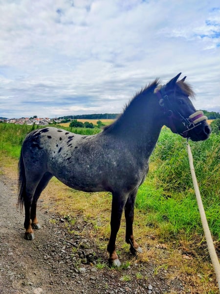 Schweren Herzens bin ich auf der Suche nach einem neuen zu Hause für unseren kleinen Pony Wallach Snoopy (Rufname). - Dt. Partbred Shetlandpony - geboren 6/22 - ca. 110 cm - Schabracktiger mit vollem Papier - gesund (keine Rehe, kein Exem) - steht im Offenstall mit 24/7 Sommerweide - er ist im Schritt und Trab geführt geritten - läuft brav an der Longe und hört gut auf Stimme - ist gelehrig für Zirkustricks und Freiheitsdressur - Hufbearbeitung mit dem Winkelschleifer ist kein Problem (letzte Bearbeitung Mitte Oktober) - Verladen und Transportieren absolut unproblematisch - herdenverträglich, bei uns rangniedrig - E-Zaun sicher - geimpft und entwurmt Ich könnte ihn mir gut bei einer Reitschule mit etwas fortgeschrittenen, kleinen Reitern vorstellen wo er sich unterm Sattel weiterentwickeln kann. Auch als Fahrpony würde er sicherlich bei entsprechender Ausbildung einen guten Job machen. Im Umgang kommt ab und an mal das Shetty durch, dem aber mit Klarheit und Konsequenz ohne weiteres beizukommen ist. Diverses Zubehör kann mit erworben werden. Bei Interesse für diesen witzigen und klugen Shetty Wallach, freue ich mich über Anfragen.