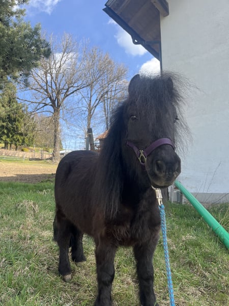 Shetty Wallach zu verkaufen • 6 Jahre alt, wird im Juni 7 • ca 1m groß • brav im Umgang • kennt Reitergewicht bzw. geführtes Reiten • kleine Anfänge zum Sulky fahren wurden auch schon gemacht, dabei zeigt er sich neugierig und lernwillig • Herdenverträglich • Schmiede und Verladefromm Weitere Fragen beantworte ich gerne telefonisch oder per Whatsapp 01606930376