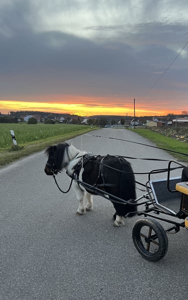 Wenn alles passt, verkaufe ich mein fast 9 jähriges Fahrpony Dusty. Dusty liebt es seine Kutsche zu ziehen, ist geländesicher und unerschrocken und auch gut am Boden gearbeitet. Allerdings braucht er eine souveräne Person an seiner Seite, die ihm klar Grenzen aufzeigen kann. Als Kinderpony ist er also nicht geeignet. Verkauft wird er nur in Shettygesellschaft in Offenstallhaltung. Die Kutsche und das Geschirr können gegen Aufpreis mit erworben werden.