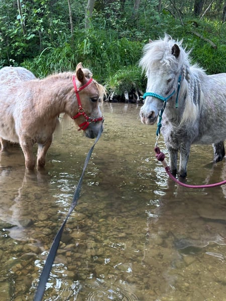 Sehr liebe und menschenbezogene Partbred - Shettystute mit vollem Papier in beste und gerne fördernde Hande abzugeben. Bonnie macht alles gerne mit: Bodenarbeit, geführtes Reiten, Spazieren gehen im Gelände, und ist dabei stets brav und vertrauensvoll. Sie hatte bereits ein Fohlen. Sie ist sehr lieb auch mit Kindern, beim Putzen und von Kindern geführt völlig unkompliziert. Wir geben sie ab, wenn alles passt, weil sie bei uns nicht genug Aufgaben hat, sich aber über jede Aufmerksamkeit freut. Sie ist natürlich schmiede- und verladefromm und absolut verträglich mit kleinen und großen Pferden. Für die Zucht geeignet - sie hat volles Papier und hatte bereits ein Fohlen. Als BEisteller auch für große Pferde geeignet, keine Rehe, kein Ekzem.