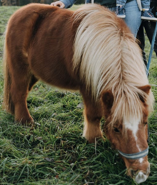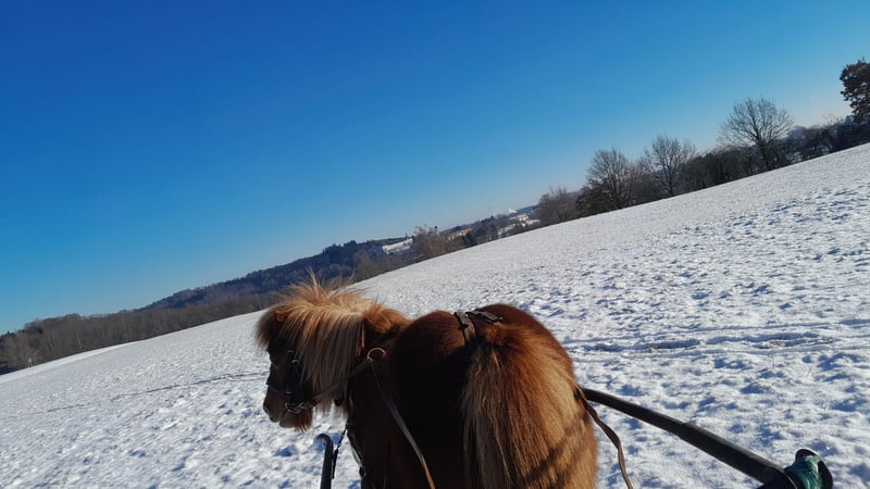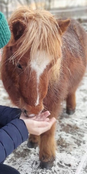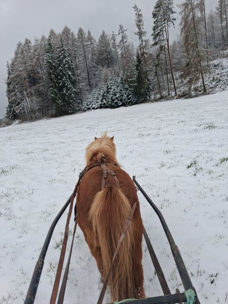 Ida kam März 2023 zu uns, nachdem ihr langjähriger Freund und Beistellpony verstorben war. Die Familie bat uns, Ida aufzunehmen, damit sie wieder in Pferdegesellschaft leben kann. Geboren in den Niederlanden, trägt sie den offiziellen Namen ETTIE V. 'T KAMPJE und besitzt einen niederländischen Pass. Sie ist bereits an Sattel und Kindergewicht gewöhnt, kennt die Grundkommandos wie Links, Rechts, Anhalten und Losreiten. Eine vollständige Ausbildung hat sie noch nicht erhalten, daher wird sie als angeritten beschrieben. Bei uns hat sie erste Erfahrungen mit dem Fahren gesammelt: Sie lief einmal einspännig mit Führhilfe an der Kutsche und hat Langzügeltraining auf dem Reitplatz erhalten. Bei ausreichend Schnee zieht sie gerne den Schlitten – ihre Fahrausbildung befindet sich im Anfangsstadium. Sie geht auch gerne mit auf Spaziergänge. Ida ist sozialverträglich und spielt gerne mit unserem Islandfohlen. Trotz ihrer kleinen Größe unter Islandpferden behauptet sie sich in der Herde gut und nimmt nicht die unterste Rangposition ein. Sie steht bei uns im Ofenstall mit direktem Zugang zur Weide. 2023 (bald darauf, als sie bei uns eingezogen war) hatte Ida leider eine Hufrehe, vermutlich eine Folge ungünstiger Futterbedingungen. Seitdem achten wir bewusster auf ihre Fütterung und ein weiterer Ausbruch blieb glücklicherweise aus. Da sich meine Zeit für Ida reduziert, suche ich nun ein liebevolles neues Zuhause, das ihr Bewegung ermöglicht und auf ihre Futterbedingungen achtet, damit sie gesund und glücklich bleibt. (Obwohl wir viele Mücken haben und ich Ida ohne Decke draußen habe, zeigt sie bei uns KEINERLEI Anzeichen von Sommerekzem und hatte sie auch bei der Familie vorher nie Probleme diesbezüglich. Sie macht einen gesunden Eindruck, hat schönes Fell und die Äppel sind wie sie sein sollen) Ida ist ein authentisches, lebhaftes Pony mit viel Charakter. Sie liebt Gesellschaft und kommuniziert klar, wenn ihr etwas nicht passt – sei es durch Stehenbleiben, Kopfschütteln oder den Wunsch umzudrehen. Wie bei allen Shettys ist sie daher nur unter Begleitung von ponykundigen Erwachsenen oder ponyerfahrenen selbstbewussten Jugendlichen, die klar mit ihr sind und weiter an der Erziehung feilen, zu empfehlen und sollte nicht mit einem "kleinen Kuscheltier" verwechselt werden. Unsere Hunde sind ihr vertraut. An ihrer Weide führt die Landstraße entlang, sie ist somit LKWs, Motorräder und jeglichen Verkehr gewöhnt. Außerdem kennt sie von unserem Hof, Traktoren, Bagger, Rinder, Kaminrauch, Lagerfeuer, Kinderrufe etc. Gerne beantworte ich Fragen, einfach melden!