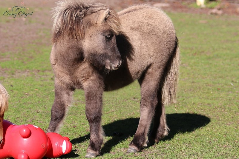 Coolstep Showgirl - Grey Dun Filly by BuPrH FN-LH Coolstep Lloyd lives up to her name: a cuddly, energetic little doll with a lot of charisma. Showgirl is familiar with the basics of foal care, is regularly dewormed, and has been presented to the farrier without issues. She received the foal premium and has full papers from the Brandenburg-Anhalt Horse Breeding Association. She is free from SA (Splenic Anemia) carrier status. Shared turnout with her mother (StPrSt A Trappelfööt's Smiling Hope) possible. All additional information can be found on the website: https://coolstep-shetlands.jimdoweb.com/verkauf/