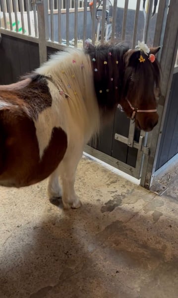 shakira v. Polderka is bij ons geboren op 25 april 2023, het is een lieve mooie bruin bonte Shetlander merrie die dagelijks in de hand komt, ze is bekend met poetsen, wandelen, hoefsmid en kinderen om haar heen. Stamboekpapieren aanwezig. Op dit moment is haar hoogte 85cm. Kan binnen en buiten staan en in een kudde is ze ook makkelijk.