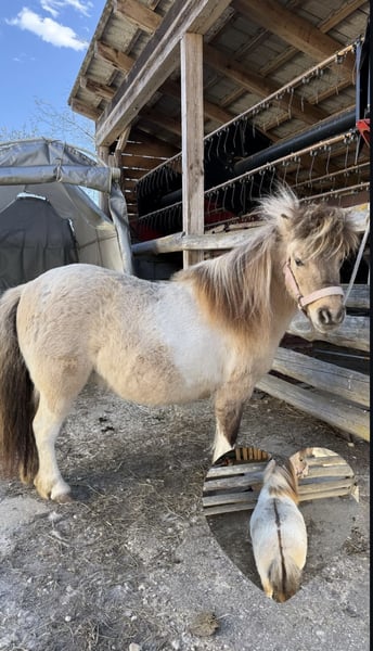 Na sprzedaż oferujemy młodą, wyjątkową klacz szetlandzką o rzadkiej maści dunalino, idealną do dalszej hodowli. Klacz ma 82 cm wzrostu, co czyni ją doskonałym wyborem hodowlanym. Obecnie jest źrebna ogierem palomino (67 cm) – termin wyźrebienia przypada na czerwiec, co daje ogromny potencjał na uzyskanie bardzo atrakcyjnego kolorystycznie źrebięcia. Wyróżnia się: ✨ bardzo poprawną budową ✨ świetnym, spokojnym charakterem ✨ wyjątkową, przyciągającą uwagę maścią dunalino ✨ pełnym, obustronnym i wartościowym pochodzeniem Klacz jest zadbana, zdrowa i gotowa, aby stać się wartościowym wzmocnieniem każdej hodowli. 📩 Zapraszam do kontaktu – chętnie udzielę więcej informacji.