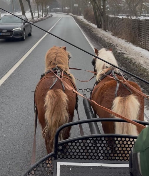 Die beiden Stuten sind 6 Jahre alt und 1m groß. Dolly ist die Stute mit der weißen Mähne, sie stammt ab von Pepe von Obernissa x Sir Wolter v.d. Bekkenkamp. Hella ist die Stute mit der dunklen Mähne , die stammt ab von Sir Wolter v.d.Bekkenkamp x Martell v.d. Veldhoeven. Durch ihre sehr guten Papiere eigenen sich die beiden auch für die Zucht. Beide sind artig im Umgang und sind herdenverträglich. Sie sind gesund , haben keine Rehe oder Ekzem. Wir können sie uns sehr gut als zukünftiges Gespann für die Freizeit aber auch für den Turniersport vorstellen. Sie sind aktuell schon gut gefahren und auch schon im Straßenverkehr gelaufen und lernen stetig mehr. Sie sind beide kopfklar und sehr lernwillig mit guten Nerven ausgestattet. Da wir eine Shetlandponyzucht haben, wäre eine Bedeckung mit einem von unseren beiden Hengsten bei Interesse möglich. Kennenlernen und auch Vorfahren und Probe fahren ist natürlich kein Problem.( da wir schon einige Leute in den letzten Jahren aus Spaß rumkutschiert haben erheben wir für das Probefahren eine Gebühr von 30€ die bei Kauf verrechnet wird)