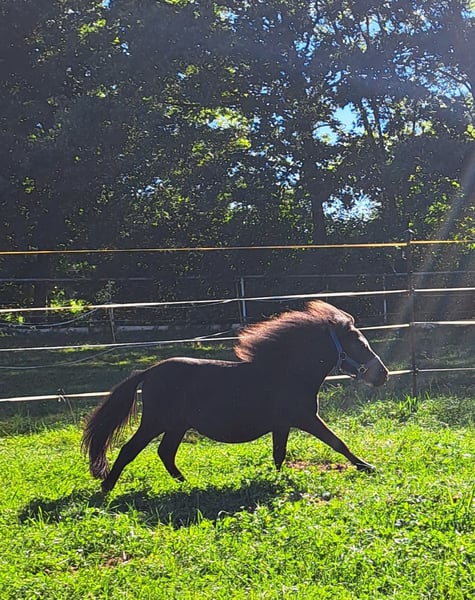 Sehen Sie es positiv, sich ein junges Pony zu kaufen. Sie haben noch etwas Zeit, dass es sich einlebt und bald kann die Ausbildung zum Reit- oder Kutschpony starten. Merlin ist ein sehr hübscher Ponyhengst mit seiner beidseitigen Mähne. Er ist ruhig wie seine Mutter, die ein ausgesprochen braves Kinderpony ist. Mit seinen zwei Jahren ist er den Umgang mit Kindern gewohnt, er lässt sich brav von ihnen führen, anbinden und putzen. Bereits im nächsten Jahr kann er zugeritten werden. Er hat auch die guten Gänge der Mutter geerbt, die eine Kronstute ist. (letzten 2 Bilder) An ihrer Seite hat er sich zu einem jungen unerschrockenem Pferdchen entwickelt. Wir machen bereits Spaziergänge im Gelände. Endmaß vermutlich 100 - 108 cm Mit dieser Größe können Kinder relativ lange damit reiten. Auch eingespannt, wird er ein gutes Bild abgeben. So wird er dem neuen Besitzer viel Freude bereiten.