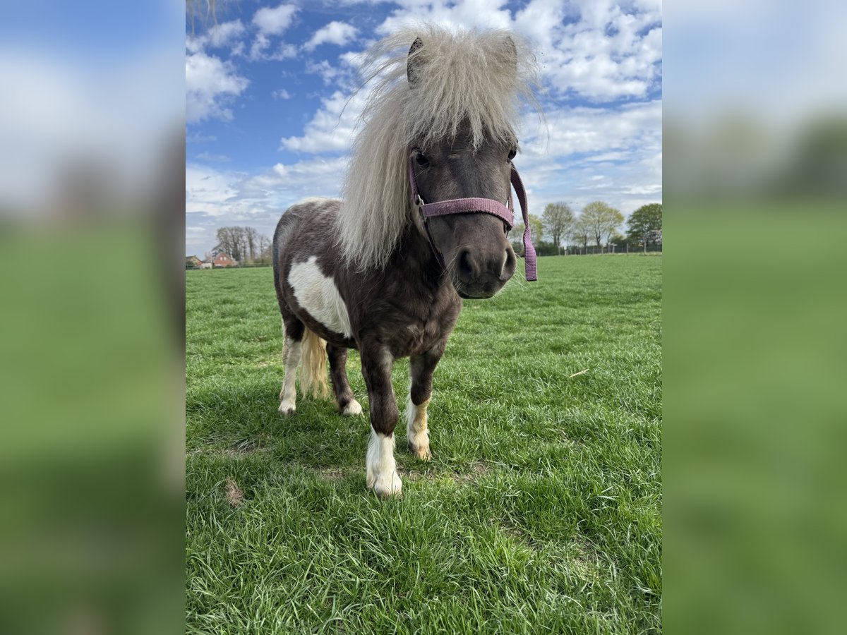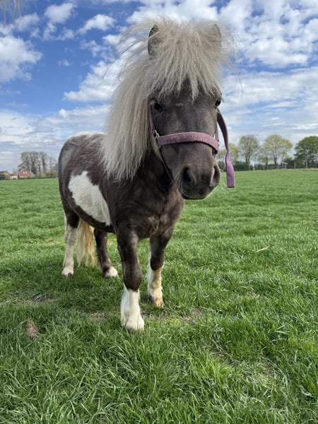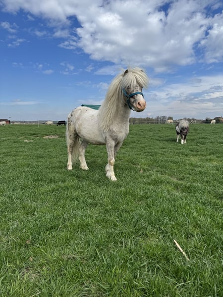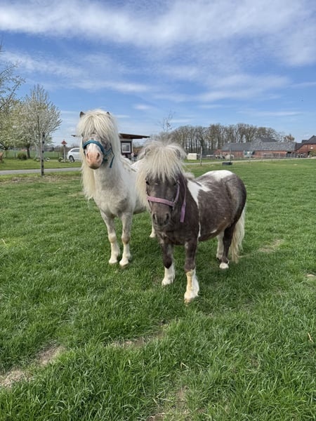 Our charming Shetland Pony stallion "Rookie" is looking for a loving new home! Born on July 31, 2023, he is raised responsibly on our farm and impresses with his friendly nature and balanced temperament. His mother and father can be viewed on-site. Rookie is already halter-trained, behaves well with the farrier, and is in excellent health. Regular deworming and up-to-date vaccinations have been administered. A wonderful young stallion with great potential—ideal for breeding and leisure riding. Image 1: Rookie Image 2: Rookie with his sire Gideon V.D. Margrid Image 3: Sire Gideon V.D. Margrid Image 4: Dam Chantal "Streusel"