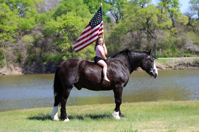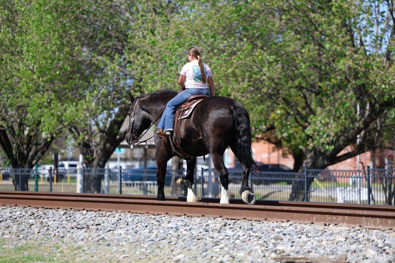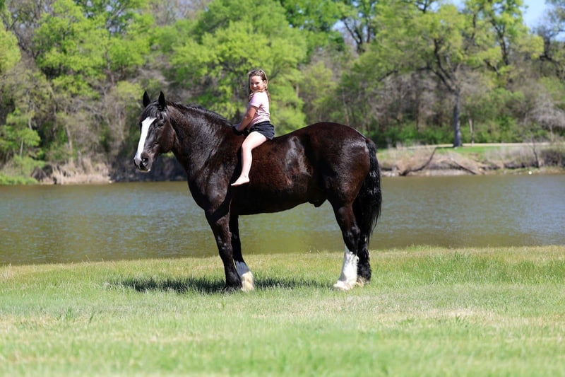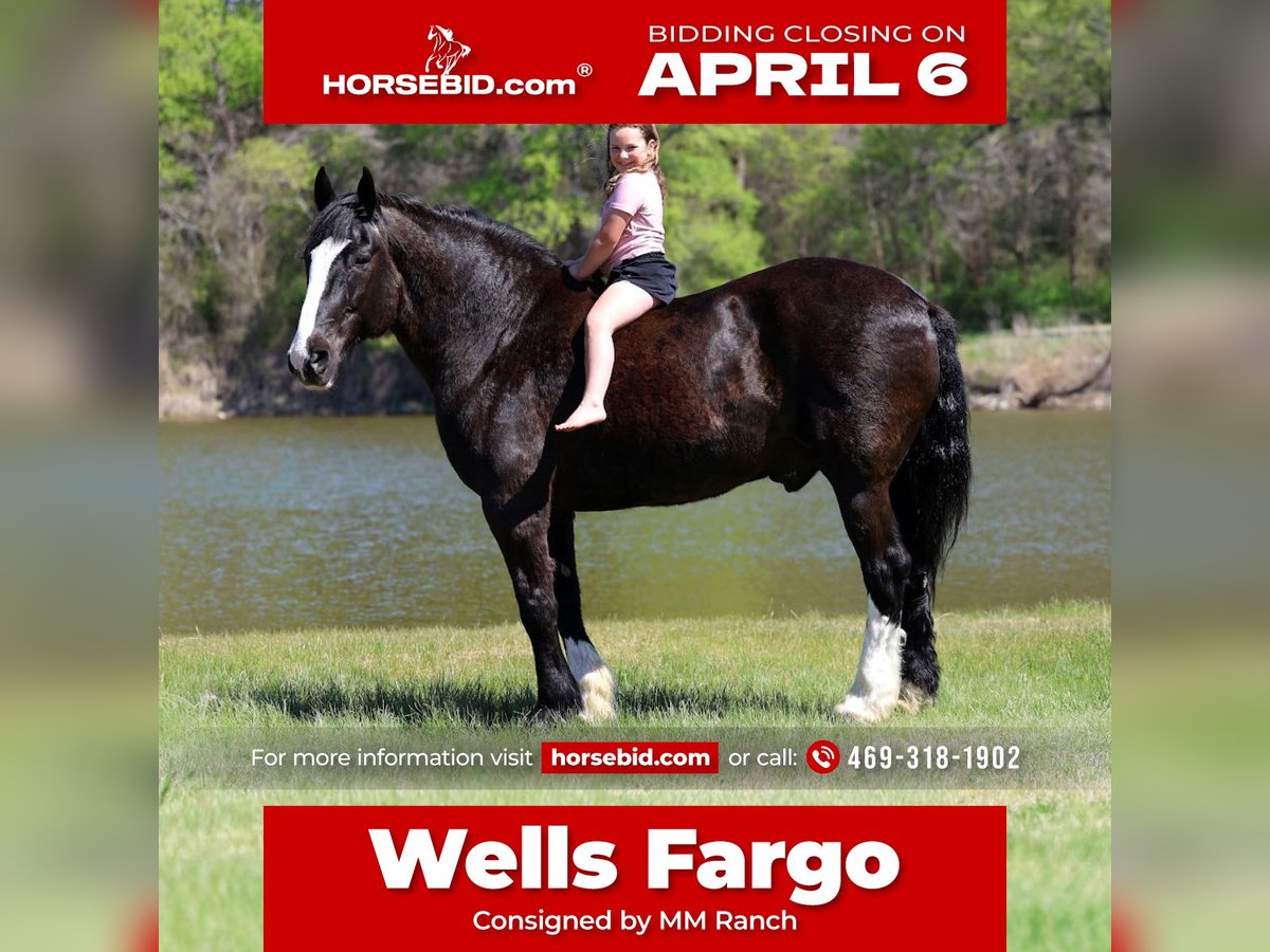🌟𝑨𝒑𝒓𝒊𝒍 𝐀𝐋𝐋 𝐒𝐓𝐀𝐑 𝐋𝐈𝐍𝐄𝐔𝐏🌟 Happening now thru MONDAY | APRIL 6th - Available EXCLUSIVELY on HorseBid's website! For more details and to register visit: www.Horsebid.com CONSIGNOR CONTACT: MM Ranch 469-318-1902 LOCATION: Forney, TX BREED: Shire Crossbred REGISTERED: No COLOR: Black HEIGHT: 16.2 AGE: 16 GENDER: Gelding This is one is a good one. ☝️ Meet Wells Fargo. A shire crossbred. Yes he is a half shire. He is an unbelievable cool horse. Absolutely as gentle and sweet as a puppy. And so much fun to ride. Wells Fargo is a 16.2 hands tall stunning black gelding. This is one cool crossbred horse. He is so sweet and loves attention. He will walk right up to you in the pasture and he wants you to catch him. He loves going on adventures. Truly loves being around people. Seriously you cannot walk out to the pasture without him being in your pocket and wanting to follow you everywhere you go. Wells Fargo came off a big ranch in Montana. Where he was being used like a ranch horse. They used him like as if he was a small quarter horse. He doesn’t know he is big. Really he is a perfect size for a crossbred. He is big but not too big. They treated him just like all the other horses. They did all the chores on him. From pulling a hay wagon to put out hay. (Both single and double). To riding out on the ranch to check cattle. To packing supplies up into the mountains. Even has been roped off of. He is what I would call a seasoned trail horse that has extensive seen lots of country. Been in the steepest parts of the mountains. He can handle any terrain. Can also handle being in town around cars, big trucks, trains, bikes, etc.. Loves to cross water (so he can play in it). Has had a gun shoot off of him and around him. Used durning hunting season as well to pack out deer and elk. He is been there done that type. Has had lots of mileage put on him. For a big horse he has the smooth trot and lope. And super easy to get into a lope. You don’t have to kick hard. Just give him a smooch. Has a lot of handle. Neck reins. Backs. Side passes. Really broke and soft in the bridle. Responsive to all cues. Whether on his back or on the ground. You don’t have to pull hard. He is very soft both in his mouth and to side cues. We just ride him with simple short shank snaffle. He is also aware and cautious with his surroundings. Our little sweet 12 lb puppy is always running around his feet and also the kids. He makes sure to not step on them. I would say Wells Fargo is suitable for any age or riding experience. He is safe. Absolutely no bad habits or quirks about him. I think he would make an excellent mount police horse. He has so much experience and patience that would make him perfect for those situations. Nothings scares him. Not all at spooky or over reactive. He is experienced around being in town around traffic and all the excitement. Wells Fargo doesn’t require anything special. We use our standard size saddle, girts, and a quarter horses headstall and bit. We didn’t have to get anything extra or special for him. He is an easy keeper. He is sound in every way. Absolutely healthy. Nothing wrong with him. We did have a pre evaluation done on him by our vet. (Will include in the pics). Horses like Wells Fargo are few and far between. Your neighbors won’t have one like him. You will stand out riding him. He is absolutely beautiful. Call us if you would like anymore info about him. We would be happy to help you arrange shipping on him anywhere.